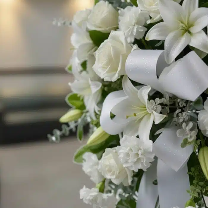 The Until Soon Funeral Pedestal See You Soon is a beautiful and delicate pedestal that allows you to express your condolences to the relatives of that being who has departed, it is made up of white Lilies, white Roses and green Foliage.
