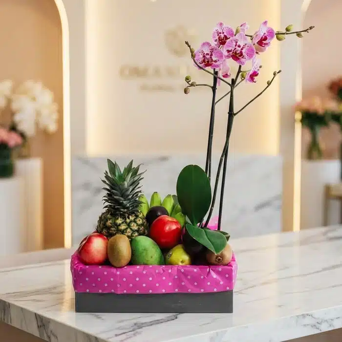 Arreglo ANTONELLO: Orquídea Phalaenopsis y Frutas Selectas 🌿