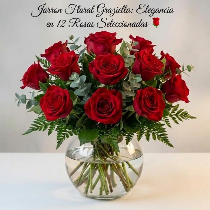 Jarron Floral Graziella: Elegancia en 12 Rosas Seleccionadas 🌹