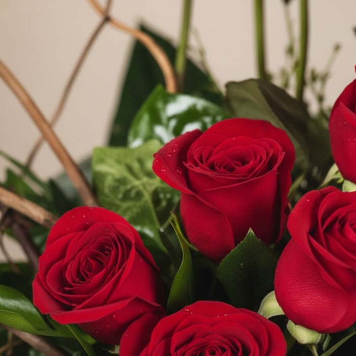 🎁 Imagina la emoción de recibir este espectacular arreglo floral. Siente el aroma fresco de 13 rosas rojas de un color vibrante que captura todas las miradas. Cada pétalo de textura aterciopelada es una declaración de amor y admiración, creando un momento inolvidable. ¡El regalo perfecto para expresar lo que sientes!