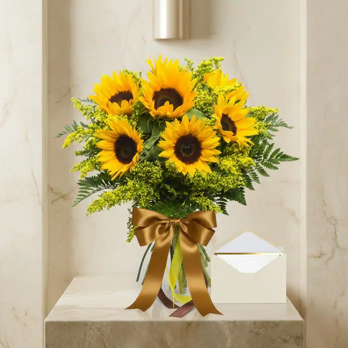 🛵 Compra con total confianza. Nos encargamos de que tus flores a domicilio lleguen en perfectas condiciones y justo a tiempo para sorprender. Enviar girasoles a domicilio nunca fue tan fácil y seguro. ¡Solo elige este hermoso ramo y nosotros nos encargamos del resto