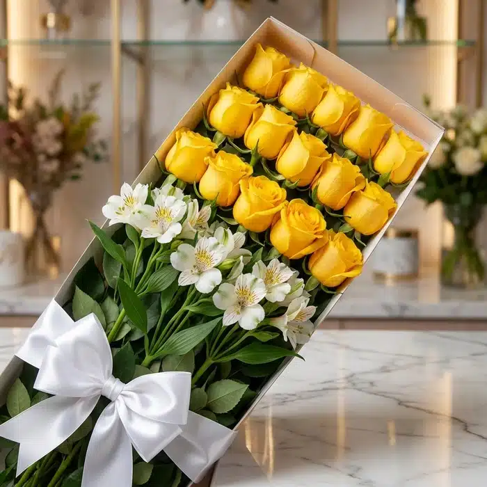 Caja de 18 Rosas Amarillas