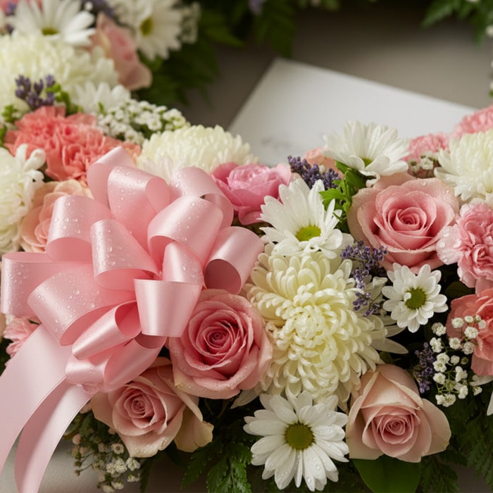 Expresa tu sentir y brinda consuelo con esta delicada Corona Fúnebre, un homenaje lleno de amor y respeto. 🕊️