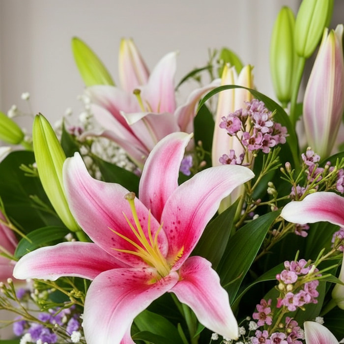 (El color de los lirios puede variar según disponibilidad)
