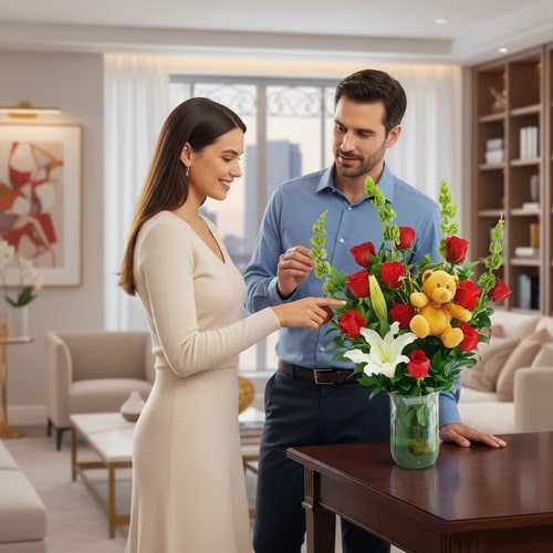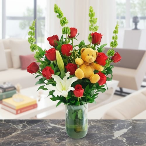 Exprésale tu amor a esa persona especial a través de peluches y flores con el Jarrón Te Adoro, el obsequio perfecto para enamorarla.
