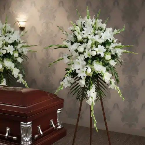 Envía tus mas sentidas condolencias a los familiares de luto a través de este lindo Pedestal Fúnebre Salvación.