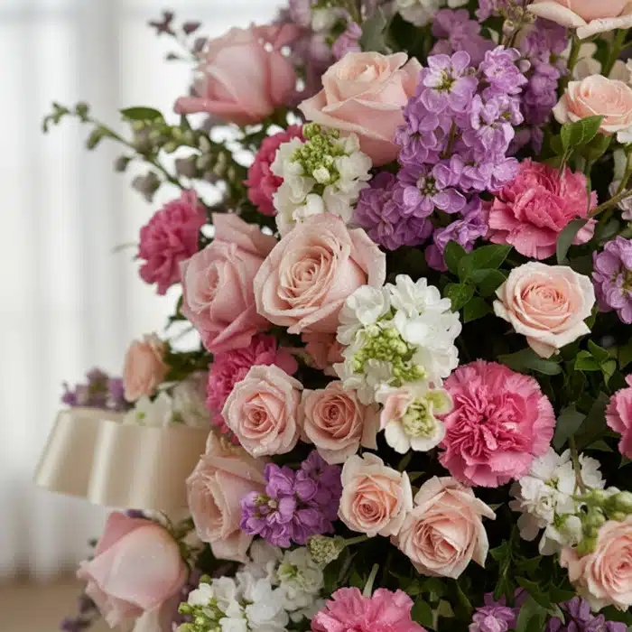 En momentos donde las palabras no alcanzan, las flores hablan desde el corazón. 🤍 Nuestra ofrenda floral, diseñada como una delicada cascada de rosas en tonos pastel, es un gesto de amor y respeto para honrar una vida y acompañar a quienes quedan. 🙏