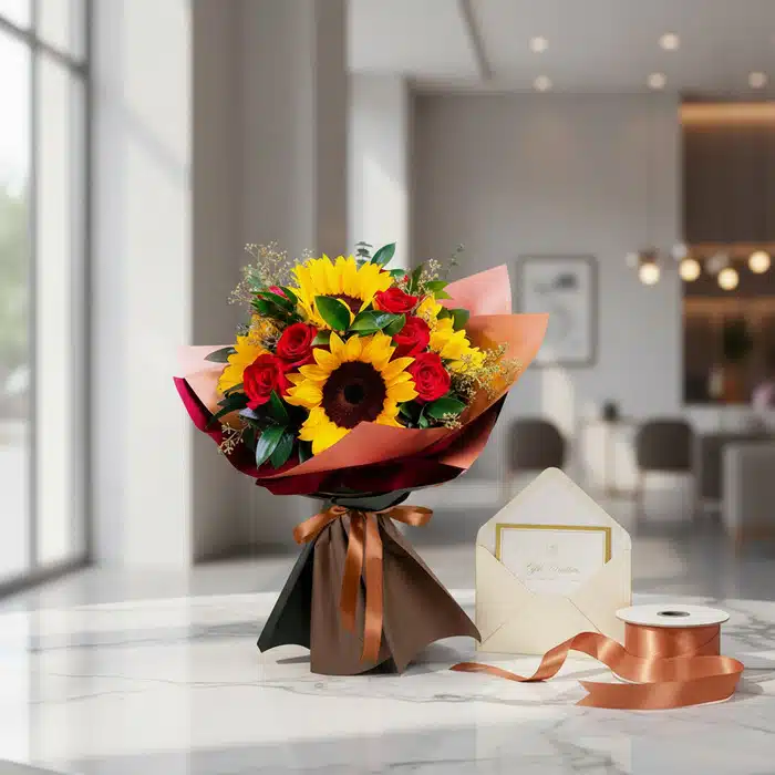 Ramo Aurora de Rosas y Girasoles | Ilumina el Día con Amor 💖